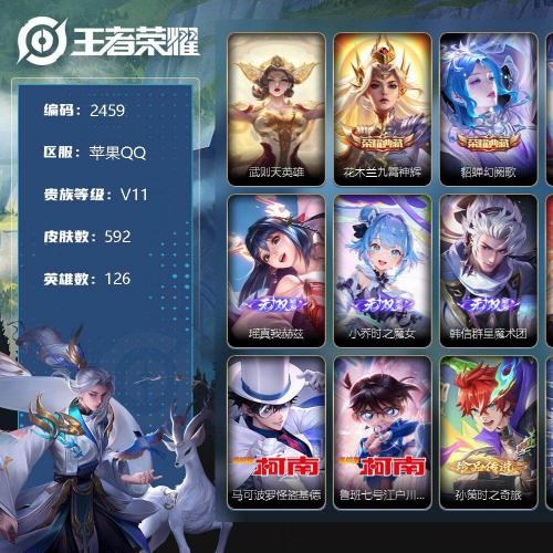 【王者荣耀】【商品标题】:103段小国分路游走,1.7w大国鲁班大师,1.8w大国太乙真人,1.7w大国孙膑,1.6w大国庄周,1.7w大国蔡文姬,1.7w大国朵莉亚,1.5w大国大乔,1.5w大国瑶,1.5w大国明世隐,多小国万战,592皮110传说9珍品传说9无双3典藏1珍品无双9天幕5星传说1小兵皮肤满级灵宝,苹果Q-V11-最强王者段位-126英雄-592皮肤-3典藏-1珍品无双-9无双-9珍品传说-110传说-211史诗 【荣耀典藏】:武则天英雄,花木兰九霄神辉,貂蝉幻阙歌,瑶拾光映像 【珍品无双】:貂蝉馥梦繁花 【无双皮肤】:武则天神器明辉仪,妲己青丘九尾,瑶真我赫兹,小乔时之魔女,韩信群星魔术团,不知火舞花合斗,公孙离离恨烟,甄姬雪境奇遇,诸葛亮天机白泽 【珍品传说】:马可波罗怪盗基德,鲁班七号江户川柯南,孙策时之奇旅,嫦娥器灵落星盏,张飞兔狲蓬尾,瑶大耳狗之梦,安琪拉酷洛米之心,暃朽木白哉,宫本武藏黑崎一护 【传说皮肤】:干将莫邪千山共赴,元歌诡秘之主,大司命死亡执政官,司马懿九山相柳,公孙离云诺千山,西施续相思,杨玉环星之鸣奏,司空震愿照山河定,女娲愿照千秋盛,妲己愿照众生和,澜愿照九州拓,蔡文姬愿照福禄聚,虞姬愿照岁时盈,云缨幻光神枪,王昭君映山客,桑启鸣野蒿,庄周牧神诗旅,夏侯惇霜北刀,铠冥王哈迪斯,朵莉亚心动手记,云中君群星魔术团,墨子黄金天蝎座,海月金乌负日,亚连落雪白狼,吕布曦玄引,貂蝉曦玄引,典韦战鼓燎原,孙尚香乘龙问璇玑,孙策乘龙淬吴钩,赵云乘龙铭钟鼎,马超琥珀纪元,铠琥珀纪元,澜逐花归海,艾琳觅芳踪,露娜霜月吟,孙膑小动物乐团,狄仁杰夜礼服假面,王昭君永恒水手月亮,甄姬至美化雀舞,大乔时之奇旅,鲁班七号时之奇旅,兰陵王影龙天霄,吕布遇见神鼓,宫本武藏惊梅引,云缨鹤归松栖,上官婉儿妄想奇谈,马可波罗妄想实况,东皇太一灼幽烈阳,诸葛亮鹤羽星尊,澜电玩雷克斯,张飞百相守梦,公孙离记忆之芯,夏洛特浮生妄,干将莫邪画中仙,花木兰燃星之曲,虞姬无限倾心,项羽无限倾心,伽罗炽翼辉光,孙悟空齐天大圣,小乔山海琳琅生,曜山海苍雷引,李信山海炽霜斩,吕布怒海麟威,李白诗剑行,狄仁杰神器狴犴令,不知火舞绯月行,王昭君星穹之声,百里守约碎云,橘右京枫霜尽,娜可露露前尘镜,马可波罗深海之息,后羿无尽星芒,马超无双飞将,大乔挚爱花嫁,孙策挚爱之约,蔡文姬花朝如约,女娲补天,孙策末日机甲,瑶时之祈愿,裴擒虎寅虎赤拳,鲁班七号寅虎瑞焰,孙尚香异界灵契,貂蝉遇见胡旋,王昭君乞巧织情,西施游龙清影,曜李逍遥 ,小乔音你心动,李元芳飞鸢探春,公孙离祈雪灵祝,诸葛亮时雨天司,镜炽阳神光,虞姬启明星使,曜云鹰飞将,李信一念神魔,刘备时之恋人,貂蝉猫影幻舞,张良黄金白羊座,干将莫邪久胜战神,虞姬云霓雀翎,达摩黄金狮子座,百里玄策白虎志,梦奇胖达荣荣,后羿黄金射手座,杨戬永曜之星,诸葛亮武陵仙君,貂蝉仲夏夜之梦,孙尚香末日机甲,宫本武藏地狱之眼,武则天海洋之心,狄仁杰超时空战士 【限定皮肤】:公孙离离恨烟,夏侯惇霜北刀,铠冥王哈迪斯,暃埋骨钱,蒙犽顽岩魄,蔡文姬夏日便利店,大乔绒语心约,虞姬夏日便利店,姜子牙天穹之誓,杨戬破阵退雄兵,李白谪仙醉月,狄仁杰阴阳师,廉颇寅虎御盾,小乔山海琳琅生,赵云皇家上将,墨子降魔,妲己时之奇旅,嬴政白昼王子,孙尚香蔷薇恋人,孙尚香异界灵契,鲁班七号乒乒小将,鲁班七号寅虎瑞焰,鲁班七号时之奇旅,庄周云端筑梦师,庄周玄嵩,钟无艳超时空战士,孙膑天狼运算者,孙膑寅虎展翼,扁鹊奇幻香踪,白起夜都怪侠,芈月白晶晶,芈月幻夜卜梦,吕布御风骁将,吕布遇见神鼓,周瑜赤莲之焰,夏侯惇匿光决锋者,甄姬幽恒,甄姬女儿国国王,甄姬落雪兰心,甄姬至美化雀舞,典韦岱宗,马可波罗暗影游猎,马可波罗深海之息,马可波罗山海玄木吟,马可波罗妄想实况,狄仁杰魔术师,狄仁杰神器狴犴令,项羽海滩派对,项羽无限倾心,关羽冰锋战神,貂蝉逐梦之音,貂蝉遇见胡旋,安琪拉魔法小厨娘,露娜一生所爱,韩信飞衡,韩信傲雪梅枪,王昭君凤凰于飞,王昭君午后时光,王昭君星穹之声,兰陵王影龙天霄,兰陵王金庭之子,花木兰默契交锋,花木兰燃星之曲,不知火舞绯月行,娜可露露前尘镜,橘右京枫霜尽,孙悟空孙行者,孙悟空齐天大圣,牛魔奔雷神使,后羿辉光之辰,后羿如梦令,后羿圣弓游侠,后羿无尽星芒,张飞虎魄,张飞百相守梦,李元芳银河之约,李元芳匿光侦查者,李元芳云中旅人,虞姬启明星使,虞姬无限倾心,钟馗神迹守卫,杨玉环寅虎心曲,杨戬永曜之星,杨戬潮玩骑兵,女娲补天,哪吒逐梦之翼,干将莫邪画中仙,雅典娜单词大作战,雅典娜黎明之约,蔡文姬奇迹圣诞,蔡文姬繁星吟游,太乙真人华丽摇滚,鬼谷子五谷丰年,诸葛亮武陵仙君,诸葛亮时雨天司,诸葛亮鹤羽星尊,大乔白鹤梁神女,大乔挚爱花嫁,大乔时之奇旅,黄忠火炮
